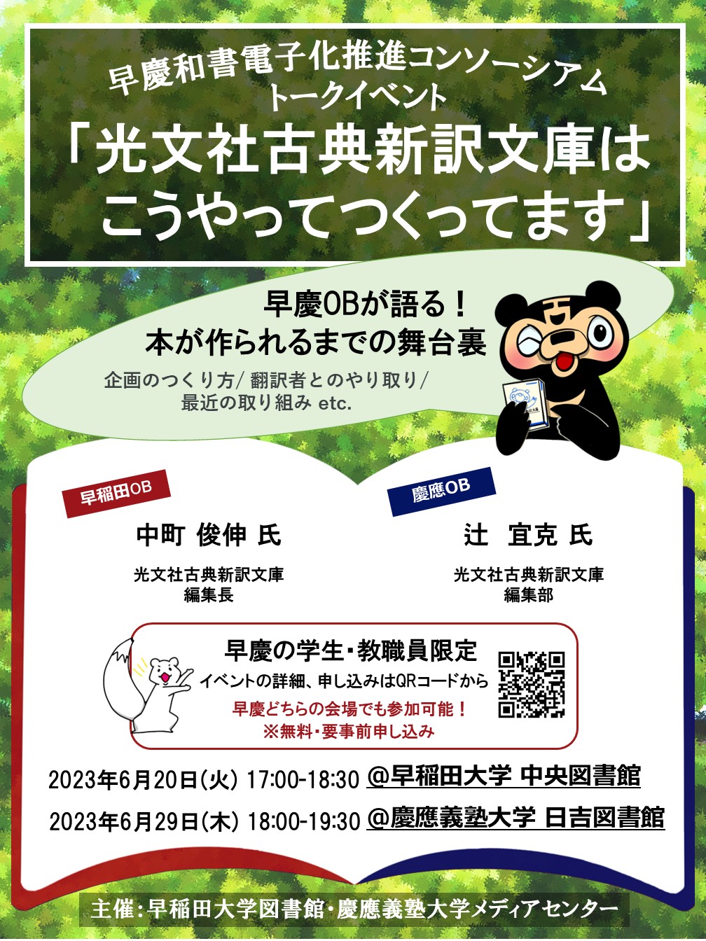 早慶OBの光文社古典新訳文庫編集者のお二人に、本ができるまでの舞台裏をお話しいただきます。